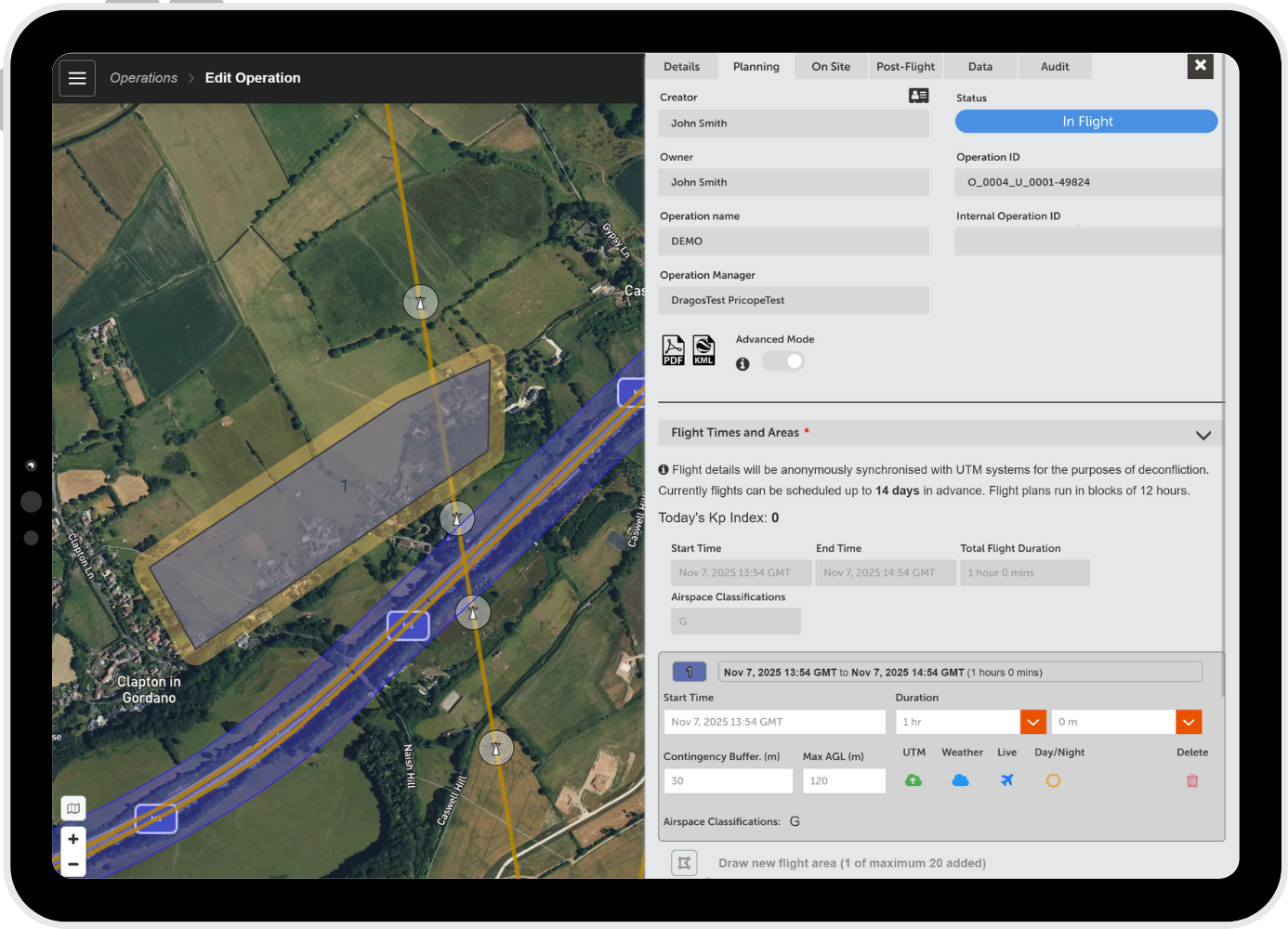 Plan, schedule, and manage drone missions with built in tools for route design, risk assessment, and documentation.